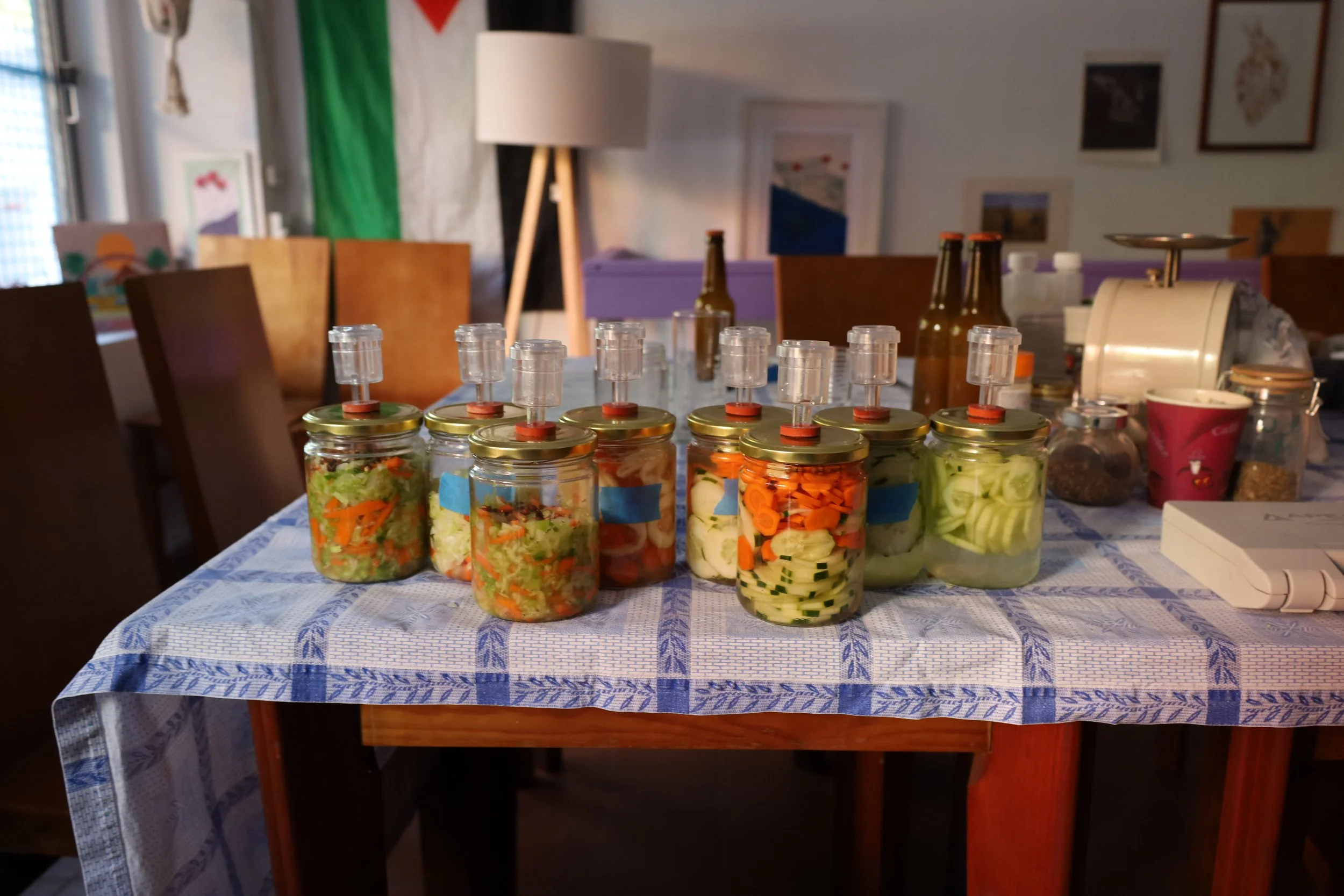 Na parte prática, cada participante irá criar os seus próprios fermentados simples, como vegetais lacto-fermentados (sauerkraut e pickles) e uma massa mãe. No final, levam para casa um jarro com os produtos preparados em aula, assim como um starter de massa mãe para continuar a prática.