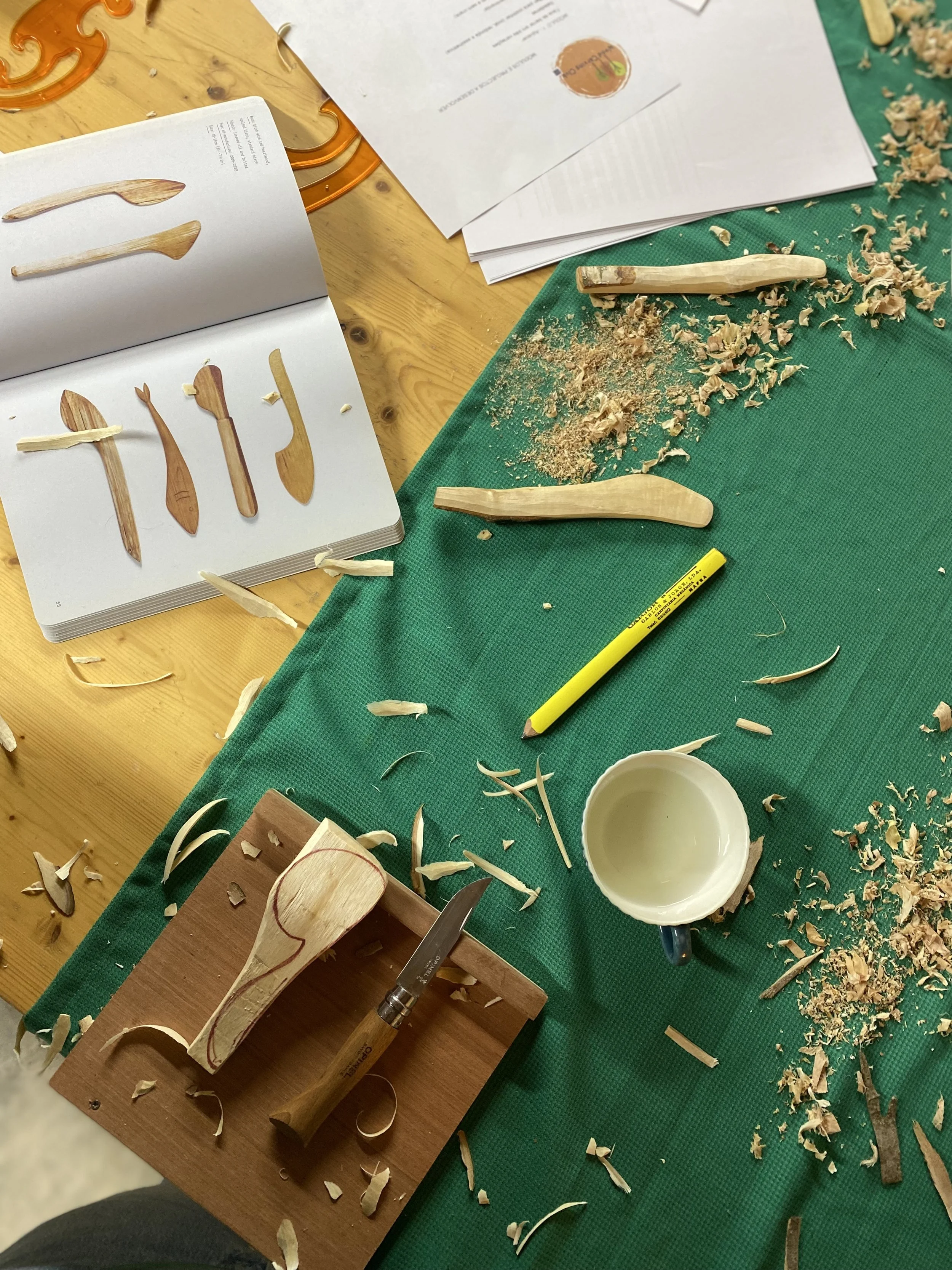 As actividades de woodcarving para crianças são uma introdução à arte e técnicas de esculpir madeira verde e criar pequenos objectos para brincar. É dada a oportunidade às crianças de aprenderem de forma segura e calma como usar uma ferramenta de corte manual.
